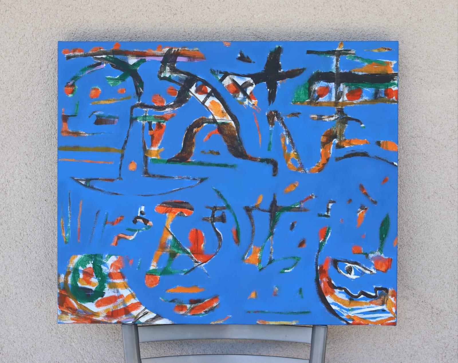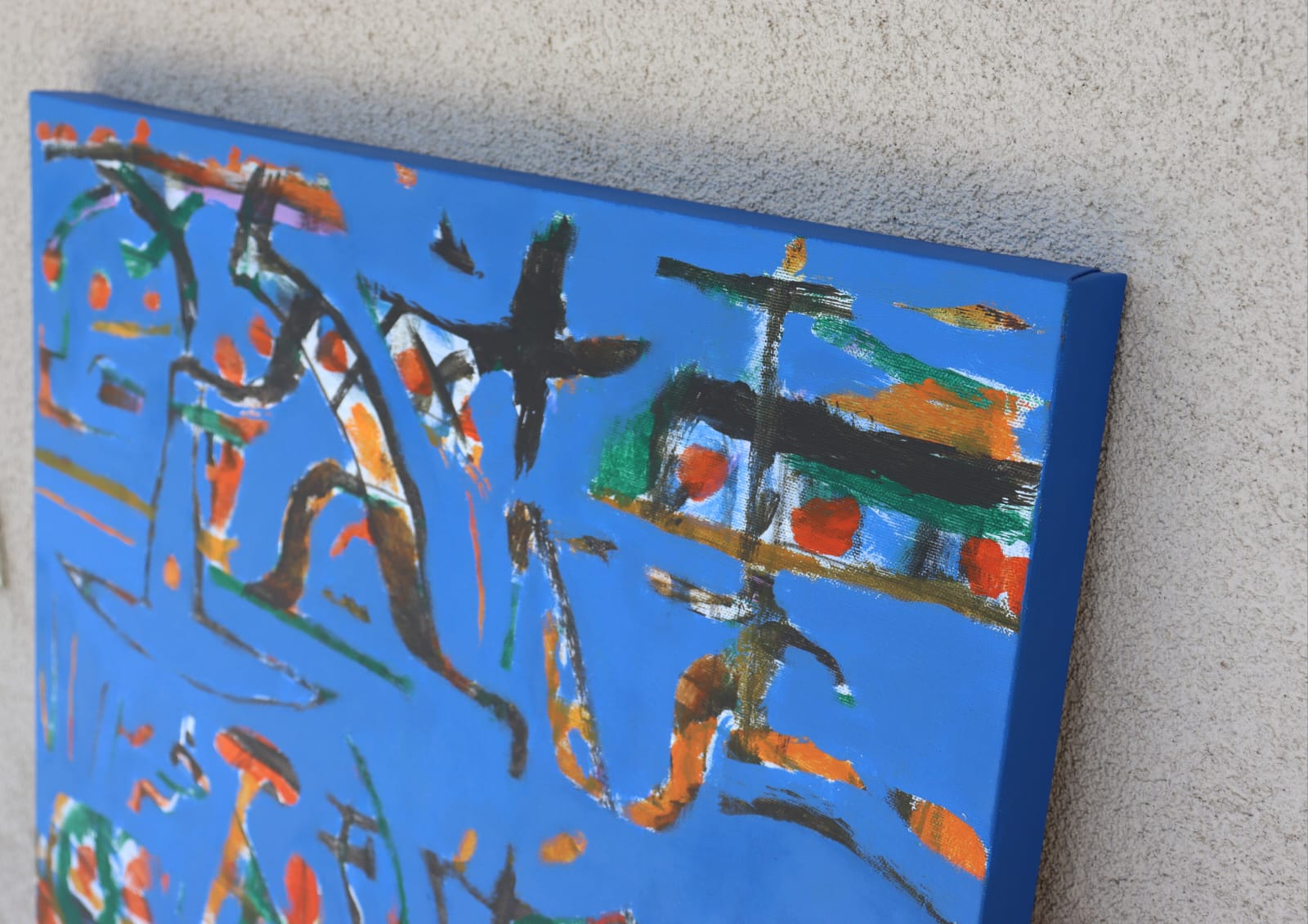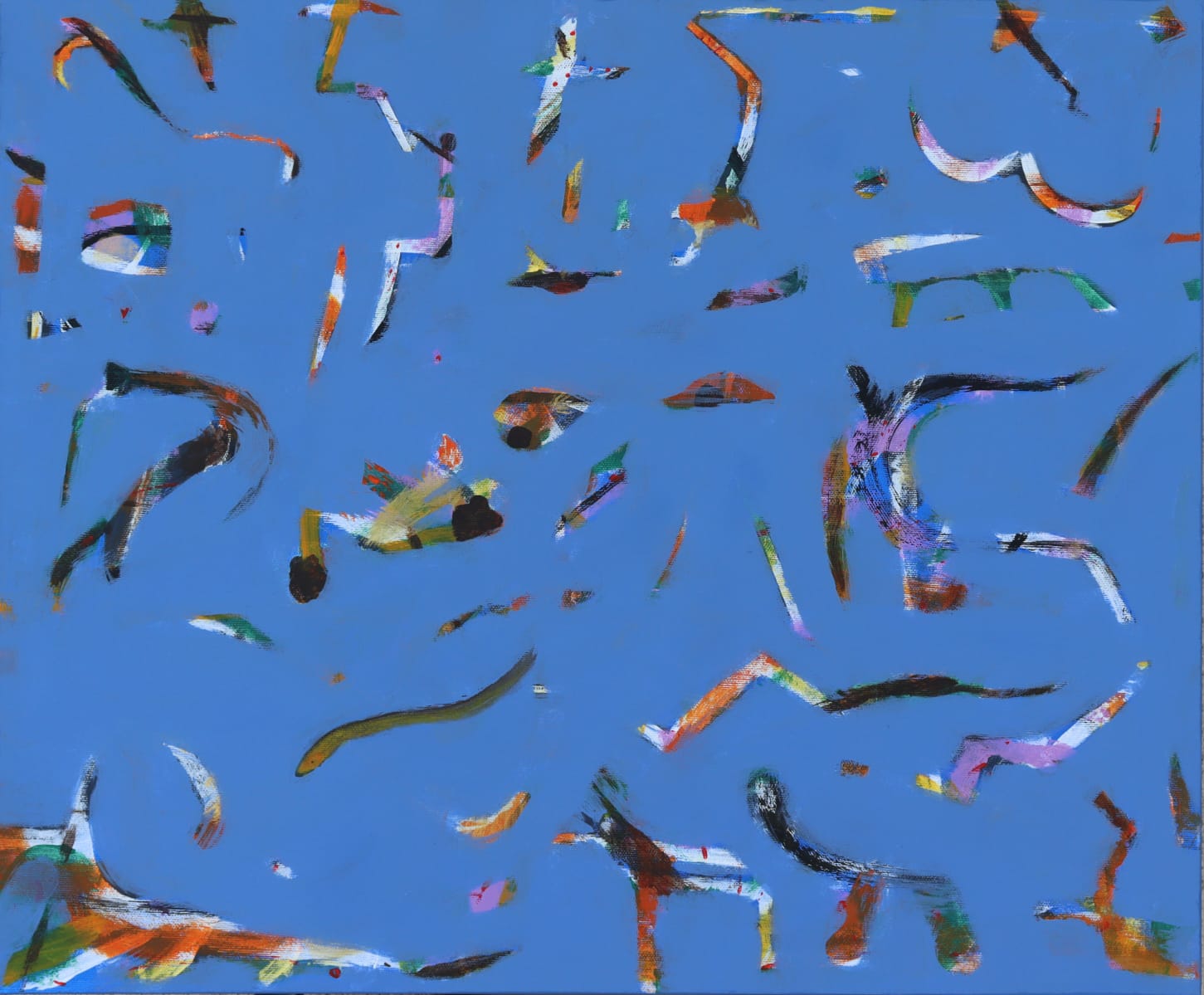 Mondo cielo è una folla sospesa, un esplosione di figure colorate nello spazio: